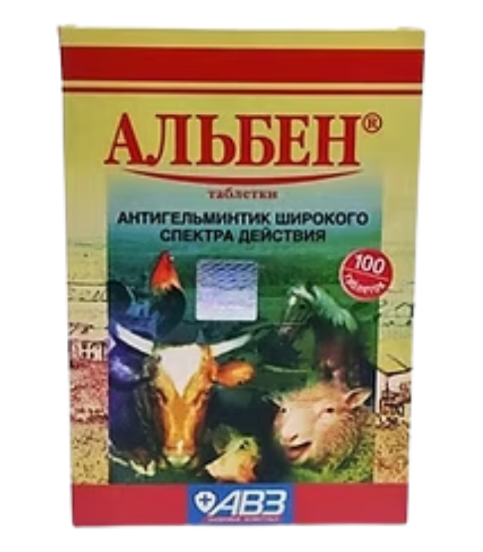 ALBEN®-ის ტაბლეტები გამოიყენება მსხვილფეხა რქოსანი პირუტყვის, ცხვრის, თხის, ღორის, ცხენის, ბეწვიანი ცხოველებისა და ფრინველის ჭიების საწინააღმდეგოდ: