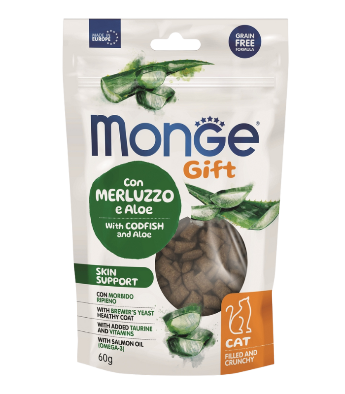 Monge, საკვები დანამატი კატებისთვის, ვირთევზა და ალოე, 60 გრ