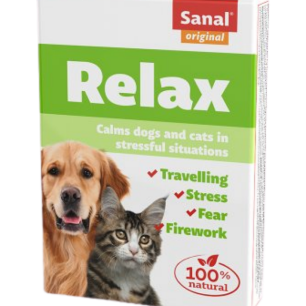 დიდი ჯიშის ძაღლებისთვის განკუთვნილი Sanal Relax 100%-ით ნატურალურია და ამშვიდებს თქვენს შინაურ ცხოველს ფეიერვერკისა და ჭექა-ქუხილის დროს გამოწვეული შფოთვისა და სტრესის დროს. ის ასევე ხელს უწყობს მგზავრობის დროს გულისრევის თავიდან აცილებას. აქტიური ინგრედიენტი L-ტრიპტოფანი (ამინომჟავა) ბუნებრივად ამშვიდებს თქვენს შინაურ ცხოველს ძილიანობის გარეშე.