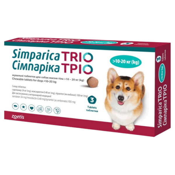 გამოიყენება ძაღლში, რომლებსაც აქვთ გარე და შიდა პარაზიტების შერეული ინვაზიები ან აქვთ ინვაზიის გაზრდილი რისკი. სიმპარიკა ტრიო გამოიყენება ერთდროულად გამოვლენილი ტკიპების, რწყილების და კუჭ-ნაწლავის ნემატოდების წინააღმდეგ. პრეპარატი ასევე გამოიყენება დიროფილარიოზის დაავადების (Dirofilaria spp.) და ანგიოსტრონგილოზის (angiostrongylus vasorum) პროფილაქტიკისთვის.