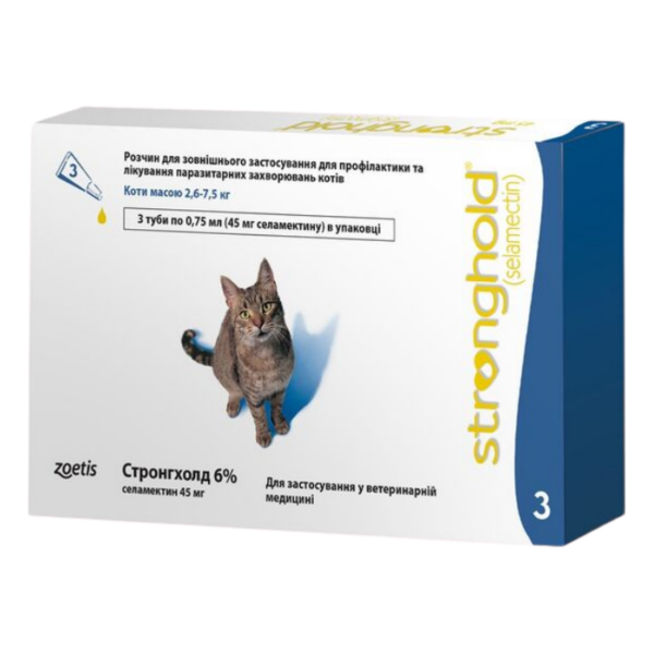 Stronghold Plus არის ყოველთვიური, სპონტანური მკურნალობა კატებისთვის, რომელიც მკურნალობს რწყილებს, ტკიპების ოთხ სახეობას, ტილებს, მრგვალ ჭიებს, ანკილოჭიებს და გულის ჭიებს. პროდუქტს აქვს მყისიერი და მდგრადი ეფექტი რწყილების ახალი ინვაზიების წინააღმდეგ 5 კვირის განმავლობაში.